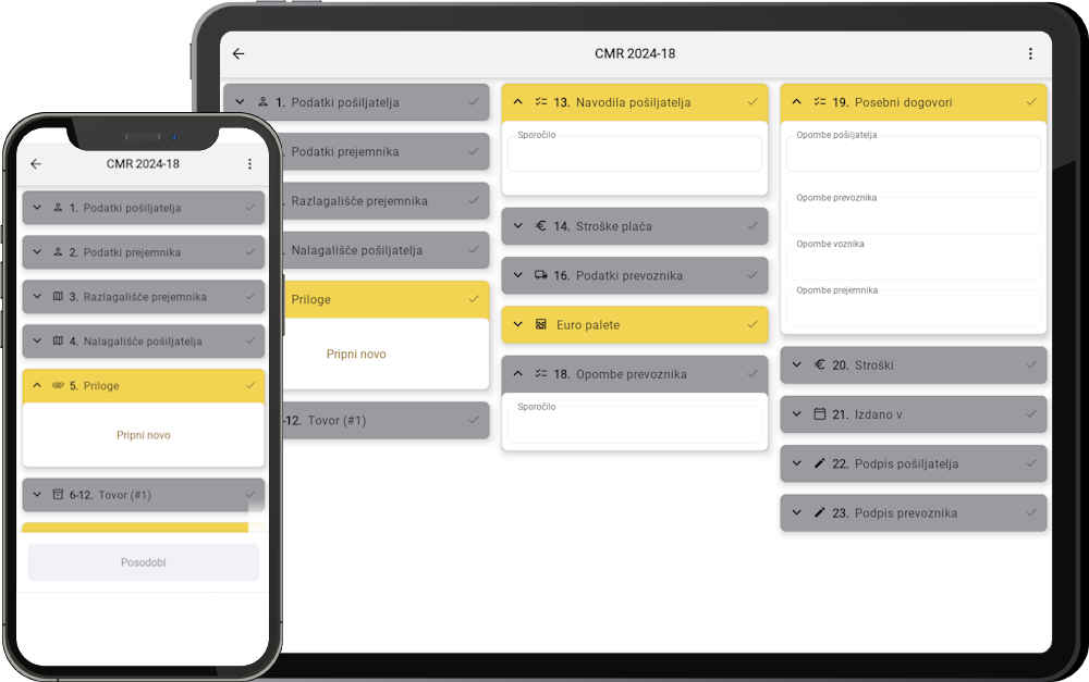 Napredna rešitev za digitalizacijo CMR (mednarodnega tovornega lista) pri čezmejnem transportu.
